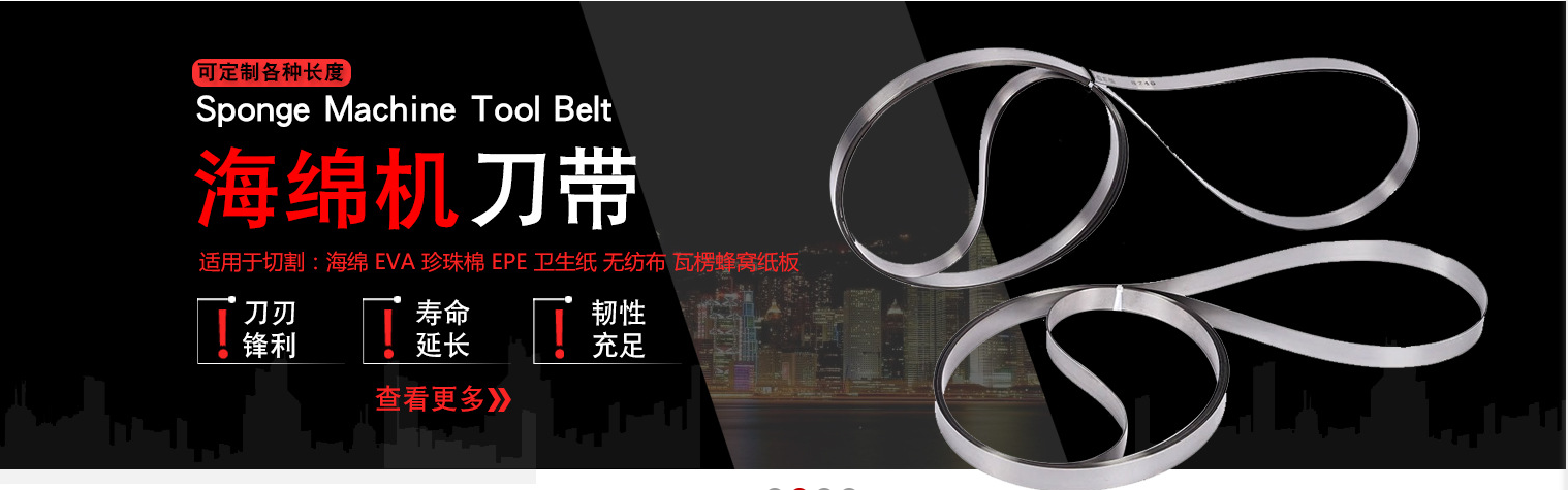 我厂产品主要应用有、制鞋业、箱包业、海绵业、服装业、皮具业、造纸业、木材加工业、制绒业等剖层、开片行业。主要产品有:锯骨机锯条、钨钢合金锯条、海绵机带刀、切纸带刀(餐巾纸,擦手纸,卫生纸等)、运剪机裁布带刀、皮革机带刀、仿形切割机线刀、数控颤刀、剖层机带刀、水泥发泡切割锯条、木工带锯条、山棕刀带、月牙刀带、波浪刀带、不锈钢刀带、金刚砂带锯条、环形带刀、带锯条等产品